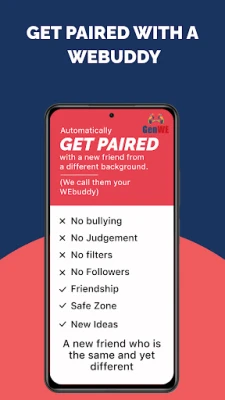 ● Make Real Friends, Real Connections: GenWE isn't just another social media platform. Get paired with a like-minded teens from a different country/ background and make real friends through common interests and conversations. Not just likes and comments.