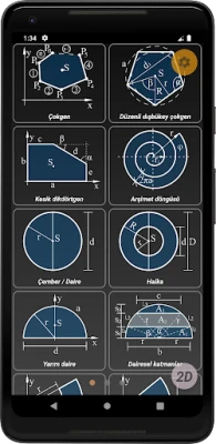 Geometryx ayrıca geometrideki sorunları ve görevleri çözmenize yardımcı olan en önemli geometrik formülleri ve denklemleri içerir.