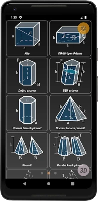 Uygulamada yer alan düzlem ve katı şekillerin listesi: