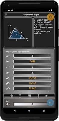 Geometryx, trigonometrik fonksiyonlar, Pisagor teoremi ve Thales teoremini kullanan basit bir hesap makinesidir.