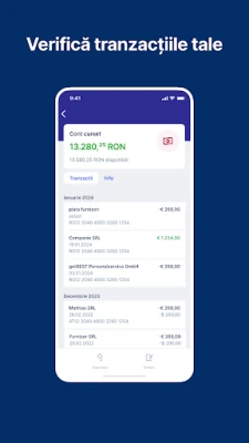 • Vizualizare detaliată a conturilor și acces nelimitat la istoricul tranzacțiilor.