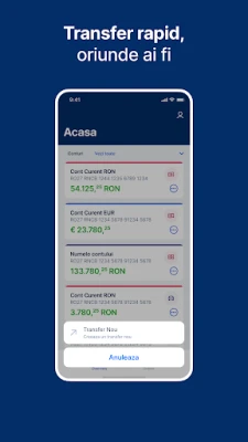 • Operațiuni rapide: transferuri, plăți facturi și schimburi valutare la îndemână.