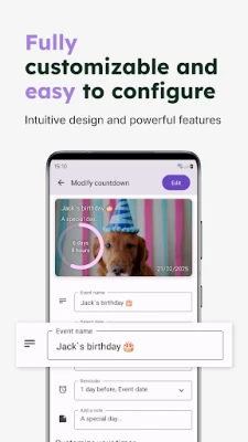 My Countdown'ın şık tasarımı ve sezgisel özellikleriyle her anın kıymetini bilin. Bir daha asla özel bir tarihi kaçırmayın ve bir sonraki büyük etkinliğinize kadar geri sayımı izlerken heyecanı artırın!