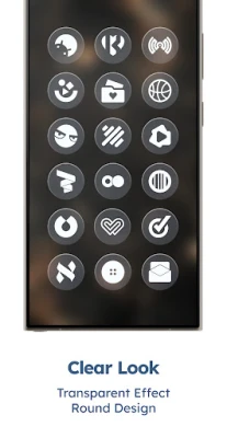 These icons feature a classic round shape with crisp white glyphs that appear to float on a clear background, creating a stunning glass effect. Perfect for any darker or blurred wallpaper, bringing a truly unique home screen experience!