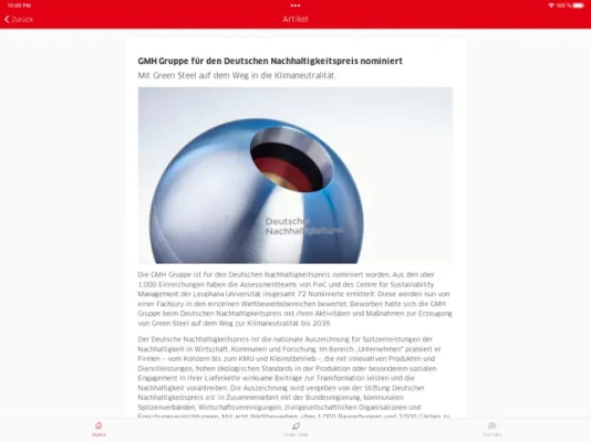 Diese App bietet allen Mitarbeitenden, Kunden und Partnern sowie alle Interessierten Informationen und Neuigkeiten über die GMH Gruppe, Deutschlands klimafreundlichsten Stahlunternehmen.Mit unserer App sind Sie immer up to date und haben• die neusten Nachrichten über die GMH Gruppe,• Informationen über unsere vielfältigen Produkte- und Kompetenzen• Neuigkeiten zu unserer gruppenweiten Nachhaltigkeitsstrategie und unserem Green Steel• einen direkten Zugang zu unserer Karrierewelt• eine Übersicht über unsere Messen und Events• sowie viele weitere praktischen Services stets zur Hand.