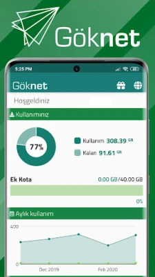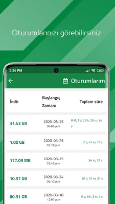 • Aylık internet kullanım detaylarınızı, indirme ve yükleme miktarlarıyla birlikte görüntüleyebilirsiniz.
