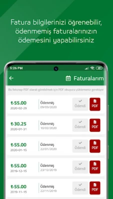 • Fatura bilgilerinizi inceleyebilir, ödenmemiş faturalarınızı güvenli şekilde ödeyebilirsiniz. Faturalarınızın belgelerini görüntüleyebilir veya indirebilirsiniz.