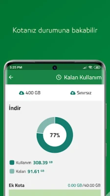 • Kotalı bir pakete sahipseniz kalan kotanızı takip edebilir, gerektiğinde ek paket satın alabilirsiniz.