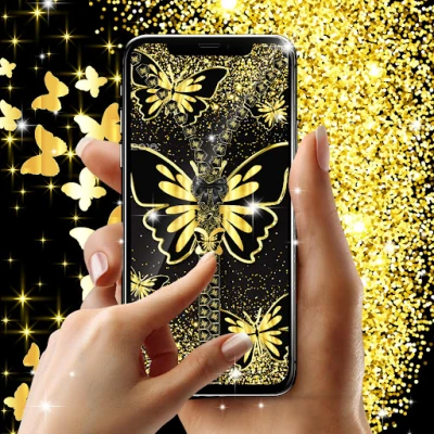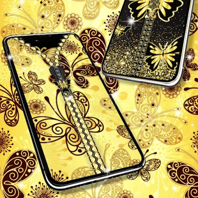 Would you like to unlock your phone in a really unique and customizable way? With our new Golden butterflies lock screen, you have the option to choose your own wallpaper for the locker screen and for your device background. Also change the zipper style, color, and design with just a simple click until you find the best combination that works for you.