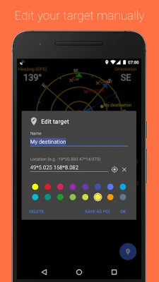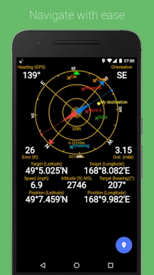 Dahili araçlar: manyetik ve gerçek kuzey kumpası, seviye aracı, bulunduğunuz yere daha sonra gelmek için işaretleme veya paylaşma.