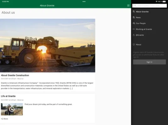 The Granite Construction app provides Granite employees and partners access to company news and information.