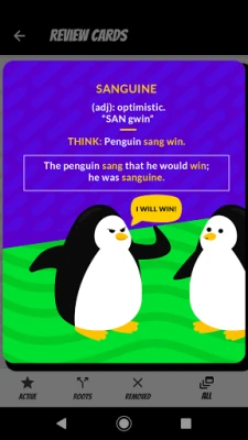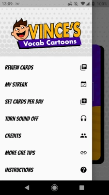 My name is Vince Kotchian, and I've been a GRE prep tutor since 2008. I've created several apps, books, and courses, and I teach both independently and on Gregmat. In this app, I've created flashcards for over 1300 GRE words and 160 word roots. Each vocab flashcard has a silly cartoon, a clear definition of the word with an example sentence, and a memorable mnemonic to make it easier to remember the word.