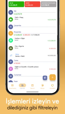 Günlük, haftalık, aylık veya yıllık gelir ve giderlerinizi takip edin.