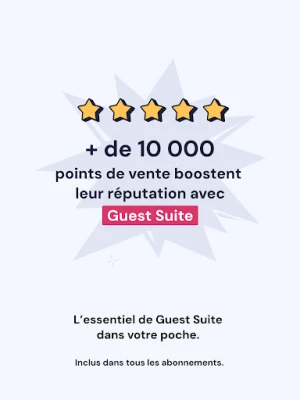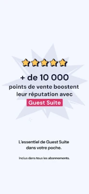 L’application mobile Guest Suite est incluse dans votre abonnement, sans frais supplémentaires. Elle complète parfaitement la version desktop, pour une gestion fluide et continue de vos avis, sur le terrain, comme au bureau.