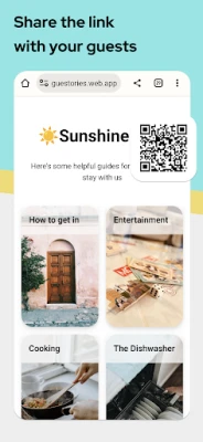 Welcome to Guestories, the app that transforms hosts into hospitality wizards. With Guestories, crafting exceptional welcome guest guide books is a breeze. Customize guides with captivating videos, vibrant images, and informative text to curate an immersive guest experience. Seamlessly consolidate multiple guides into a single link, making sharing and access effortless.