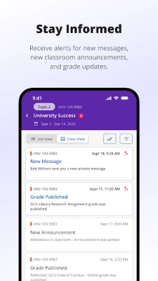 All alerts in Halo are opt-in, giving you the flexibility to choose which alerts to receive and on which devices. You can easily adjust your alert preferences directly in the mobile app or on the Halo website. Please note that you must have an active Halo Learn account with GCU or a GCU partner school to use the Halo Learn mobile app.