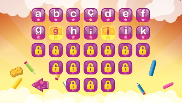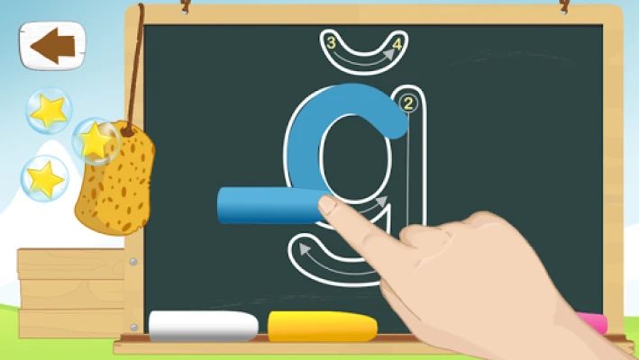 Ana özellikleri: - Farklı dört renkle tahtada yazmak, harf düzgün yazılırsa maksimum 3 yıldıza kadar kazanmak, yanlışsa silgi kullanabilir.
