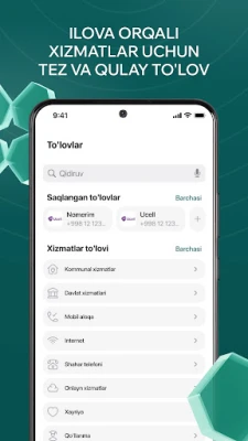 - Kommunal va boshqa xizmatlar uchun to’lovni amalga oshirish;