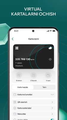 - UZCARD virtual kartasini ochish;