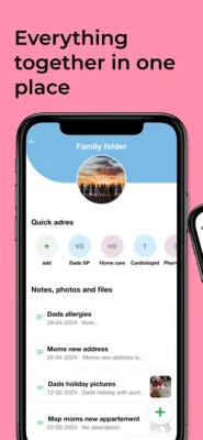 With the Hello Family app, you can easily create a social network for the person you want to care for. You can plan appointments together with family, friends, and neighbors, from scheduling visits to organizing weekly recurring activities.In the Family Map, you can conveniently collect addresses, important files, or photos all in one place. With the integrated chat feature, all your communication is in one place.