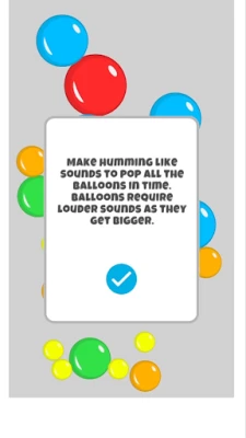 Use your microphone to play. Make humming like sounds and synchronize the frequency with each balloon and pop it. Try to pop all the balloons in time. Making humming sounds vibrates your body and relaxes you. This game needs a microphone to work, because you play the game with your voice. Grant access to your microphone at first startup.