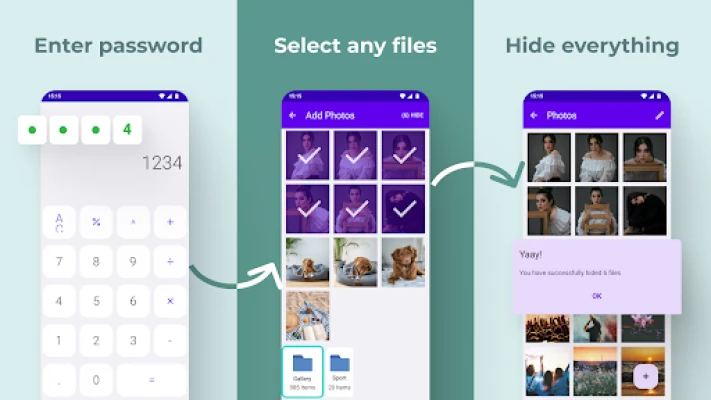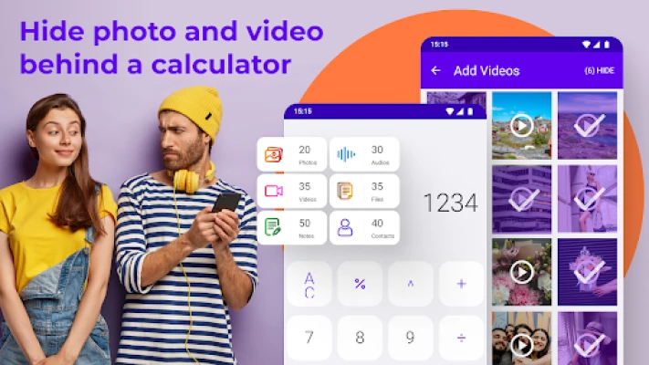 Hesap Makinesi Fotoğraf Kasası, fotoğrafları, videoları ve dosyaları gizlemek için karmaşık bir algoritma kullanır. Başkalarının bu algoritmayı ihlal etmesini veya gizli içeriğe erişmesini imkansız hale getirir.