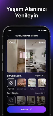 Oda Tasarımı: Yaşam alanlarınızı yeniden düzenleyin ve hayalinizdeki dekorasyonu yapay zeka desteğiyle gerçeğe dönüştürün.