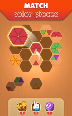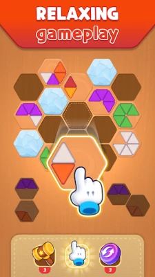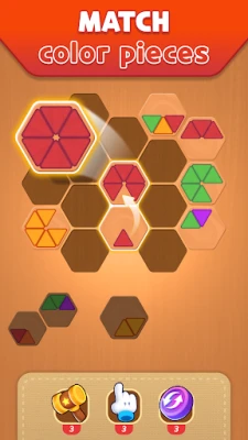 👉 Challenge your mind: Strategically sort colorful triangle tiles to complete stunning hexagons. Each perfect merge is a mini-victory, pushing you to conquer ever-increasing challenges.