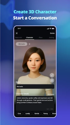 🎨 Customize & Create Your Companion Use a photo to generate your own 3D character — customize their look, define their personality, and start a conversation.
