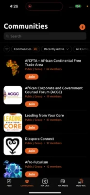 The HiA App has all the usual social networking functions, so go ahead, enjoy making connections via the membership features, join existing community groups or start your own; take part the in discussion fora and of course, message to your hearts content. And stay up to date with news and views from across Global Africa.