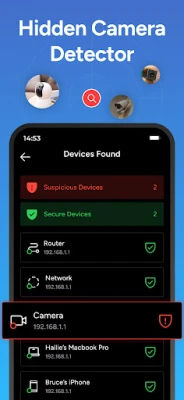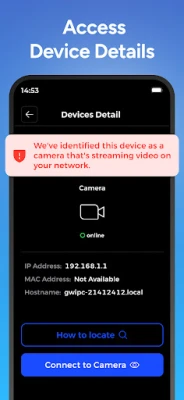 How does it work? Make sure you're connect to the Wi-Fi network of the place you are visiting and tap on 'Start Scanning' and let our tool do the work. Our algorithm will scan your network and find out any device that is online. Using our advanced technology, the cameras will be marked as suspicious on the list.