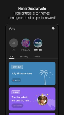 HIGHER is a global fandom social platform where global K-POP fans can participate in popularity votes, share and watch artist videos with friends, and even directly participate in the growth and content production of their favorite artists. This platform aims to create a new fan culture and provide diverse and new features and services to experience everything about K-POP.