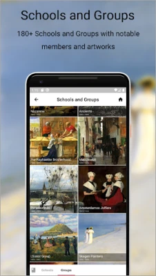 Florentine, Antwerp, Utagawa, Barbizon, Hudson River, Bauhaus, Nazarene, Skagen Painters, Fluxus, Young British Artists ve daha birçok okul ve grubu, önde gelen sanatçı ve eserleriyle birlikte inceleyebilirsiniz.