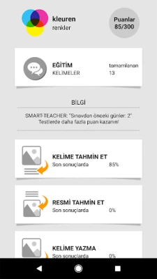 - Kelimelerin bilgisinin test edilmesi eğlenceli ve basit testlerle gerçekleşir: