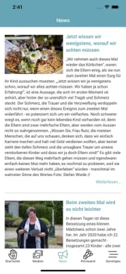 Zur Verbesserung der Begleitung soll den Betroffenen (Familien), aber auch angeschlossenen Dienstleistern und anderen interessierten Personen eine App zur Verfügung gestellt werden, welche die folgenden Funktionen anbietet1. Beiträge aus dem Vereinsleben2. Terminübersicht zu den Angeboten des Vereins3. Anmeldung zu den Vereinsangeboten4. Messenger bzw. Chat5. Spendenhinweis