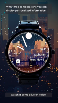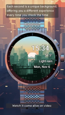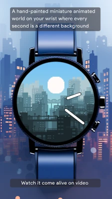 Akıllı saatinizde animasyonlu bir şehir. Saat yüzü 2880 arka plan içeriyor, bu arka planlar şehri hayata geçiriyor. 2880 arka planla, saat yüzü gün boyunca sorunsuz bir şekilde geçiş yaparak görsel açıdan etkileyici bir animasyon oluşturur. Videoyu kontrol edin.