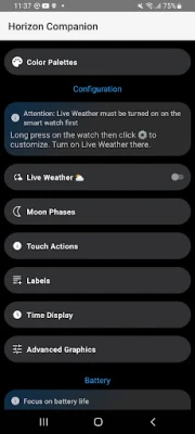 3. Be sure to run the Watch Face configuration during the first run of the app after installation, turn on “Live Weather”!
