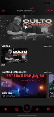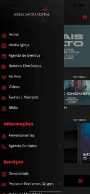 * "Conteúdos (Áudio/Vídeo): Permite visualizar e ouvir conteúdos da Igreja disponíveis no App;