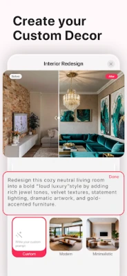 🛋️ Mobilya ve Dekoru Değiştirin Yeni bir kanepe veya aydınlatma armatürü denemek mi istiyorsunuz? Fotoğrafınızdaki öğeleri değiştirmek için dokunmanız yeterli.