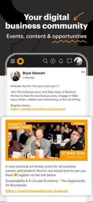 Discover Icehouse Central, the online community platform designed exclusively for Alumni of The Icehouse. Stay effortlessly connected with events, curated content, and opportunities, all tailored to keep you in the loop with your cohort and foster new connections across New Zealand. Dive into a supportive environment where you can both seek and offer guidance. Plus, access your schedule, content, and essential tools to gain the most from your on programme experience. Join today by downloading the app, and stay connected to The Icehouse community!
