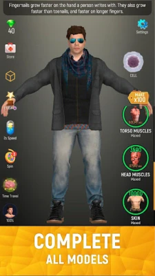 In Idle Human we give you a unique chance to discover and create the various parts of a human right from the first cell . Discovery the amazing sequence in which a human body unravels starting from the very first bones to every organ leading to the nerves and muscles and finally a complete human.