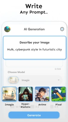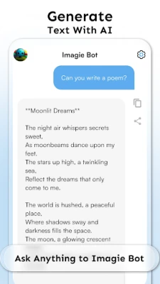 Turn words into photos & beautiful digital artworks using the power of AI! All you need to do is enter a prompt, pick an art style - and watch ImagieAI - AI Art Generator bring your idea to life in seconds. AI Chat is a revolutionary ImagieAI powered by ChatGPT & GPT-4, GPT-3.