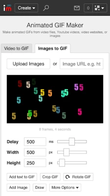 - Control the width, height, frames-per-second, looping and reverse motion, lossless file size optimization, lossy gif compression, image cropping, rotation, dithering, global color palette, transparent background color, and more!