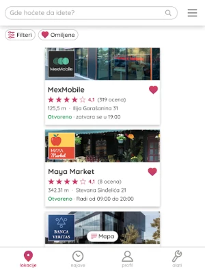 implemented, and users can filter locations by their preferences (type of facility,