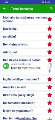 * Uygulamada selamlaşma, okulda, evde, temel iletişim, sayılar, saat ve tarih, konaklama, alışveriş, aile, insanlar, acil durumlar, beden, gibi çok faydalı ve hayata yakın günlük iletişim cümleleri içeren 58 konu bulunmaktadır. sağlıklı, dışarıda yemek yemek, spor, aktiviteler, ülkeler ve diller, çevre, işler, seyahat, bilgisayarlar, hayvanlar hayvanlar, oyun, arkadaşlarım, öğretmenler, komşular, ev aletleri, sinema ve sinema, müzik, partiler, postane, kitaplar, mevsimler ve hava durumu, hobiler, mutfak, randevular, ev kargo, tren ve havaalanı, hayvanat bahçesi, banka, büyük ve küçük, planlama, boş zaman, festivaller, icatlar, enerji tasarrufu, dünya kupası, tarihi yerler, gönüllü çalışma, telefon görüşmeleri, ulaşım , mücevher ve kozmetik, kahve, oteller, hastaneler.