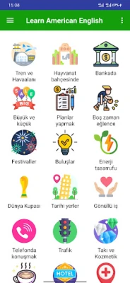 * Seyahat: Seyahat ederken kullanabileceğiniz birçok yaygın ifade. Yerel halkla Amerikan İngilizcesi ile iletişim kuramadığınızda çok faydalıdır.