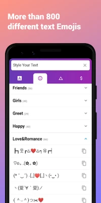 140 farklı metin stilleri boyunca, bu serin yazı tipleri ile mesajlarınızı vurgulayın.