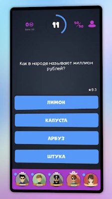 Твоя главная задача - ответить правильно на 15 вопросов и выиграть один миллион. Но в битве за победу участвуют одновременно 5 игроков. Все отвечают на одни и те же вопросы. Кто-то быстро "вылетает" из игры, кто-то идет дальше и правильно отвечает на все более и более сложные вопросы. А ты сможешь стать миллионером? И сможешь ли быть лучшим среди пяти противников?