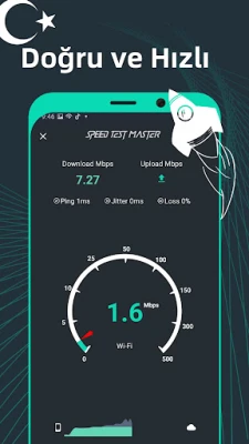 İnternet hızınızı sınamak ve ağ performansını kontrol etmek için SpeedTest Master düğmesini kullanın!