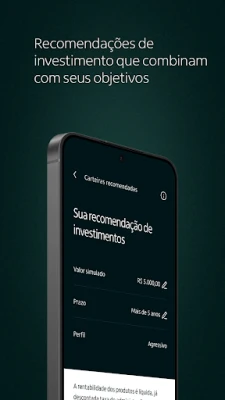 Veja a avaliação de perfil, risco e retorno dos seus investimentos, seguida de sugestões de revisão para alcançar seus objetivos.
